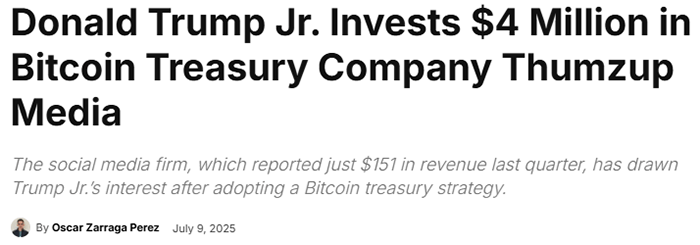 At the time, Eric Trump was on the advisory board of Metaplanet, Japan’s largest Bitcoin treasury firm, which held more than 15,500 Bitcoin, and Truth Social’s parent company had filed to launch “Truth Social Bitcoin ETF, a fund that will directly hold Bitcoin and mirror its price performance.”