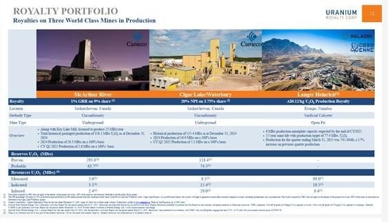 Uranium Royalty Corp bought all existing royalties in the secondary market.